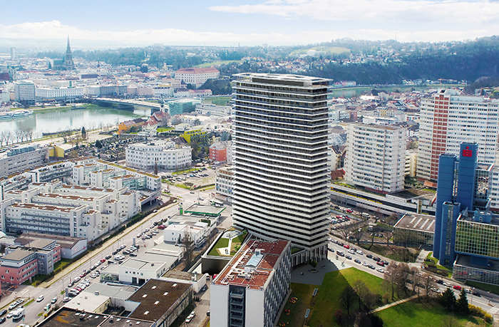 Neubau des Bruckner Towers, dem höchsten Wohngebäudes in Linz